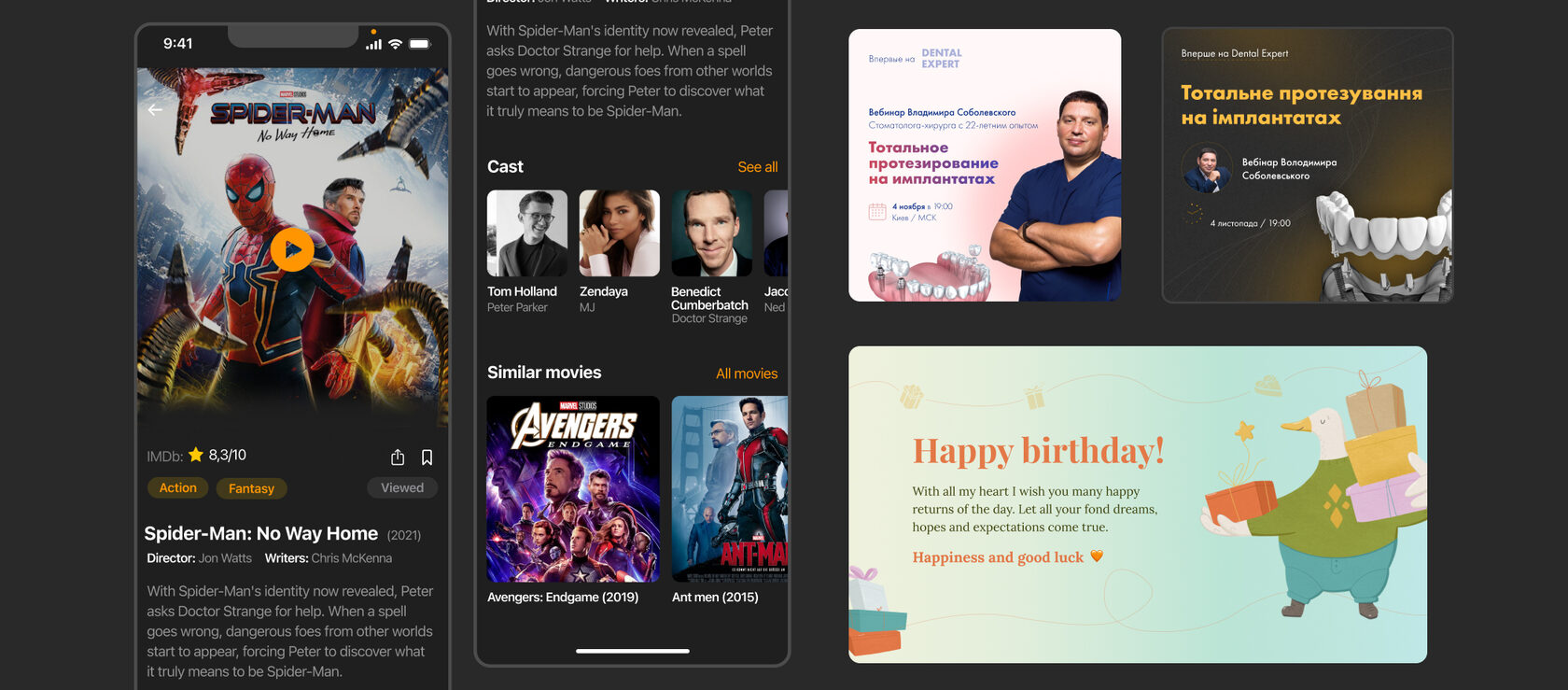 The most colorful stage. I conduct a selection of references, compose a mood board based on your preferences and the results of visual analysis of competitors, create a design concept for all pages and blocks in Figma.