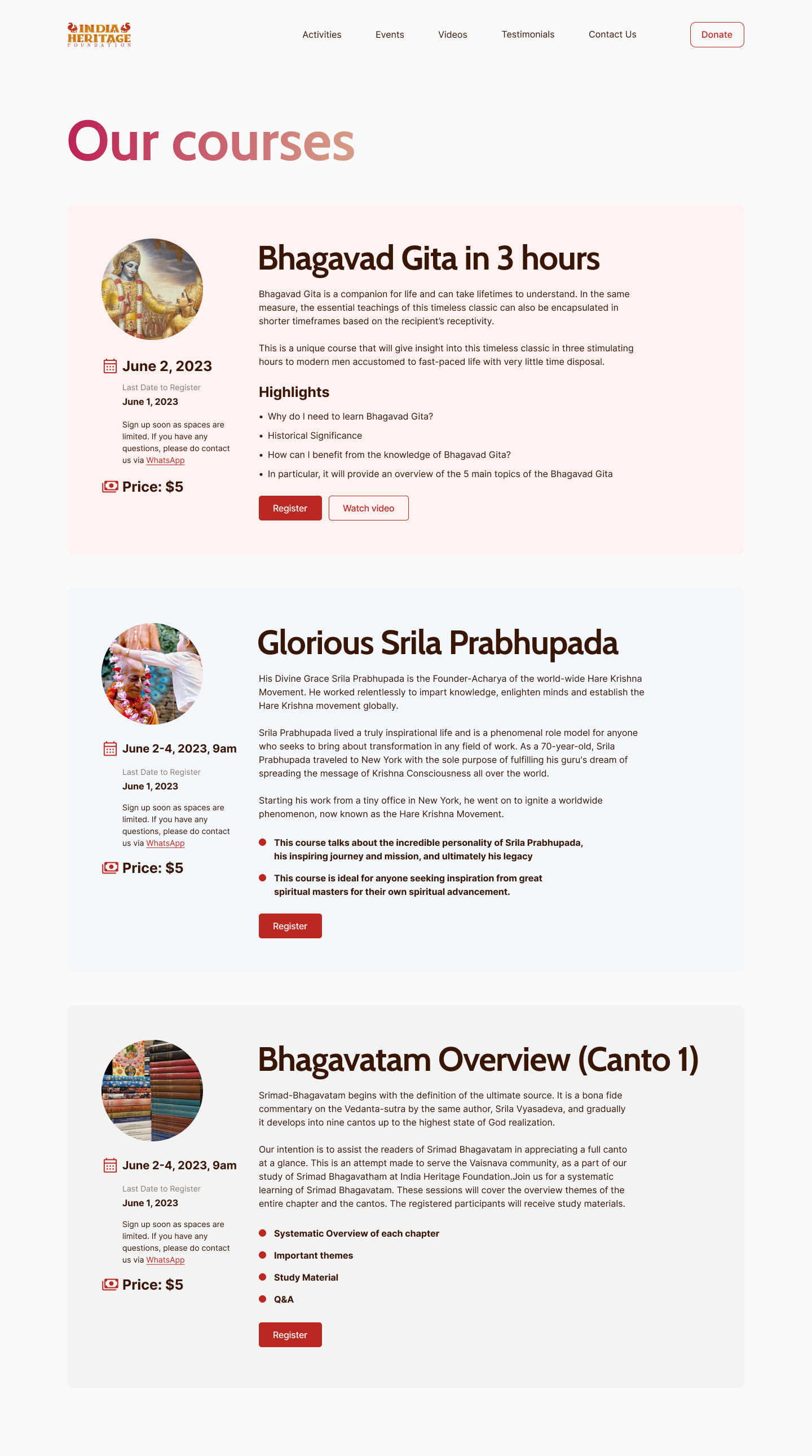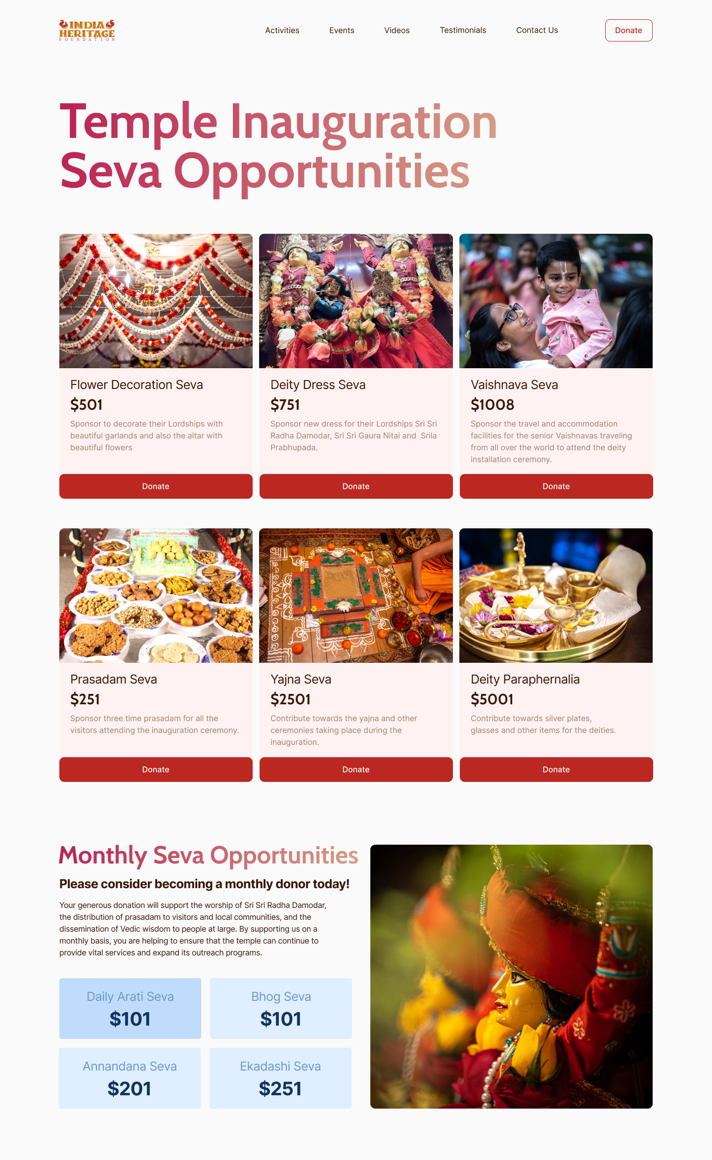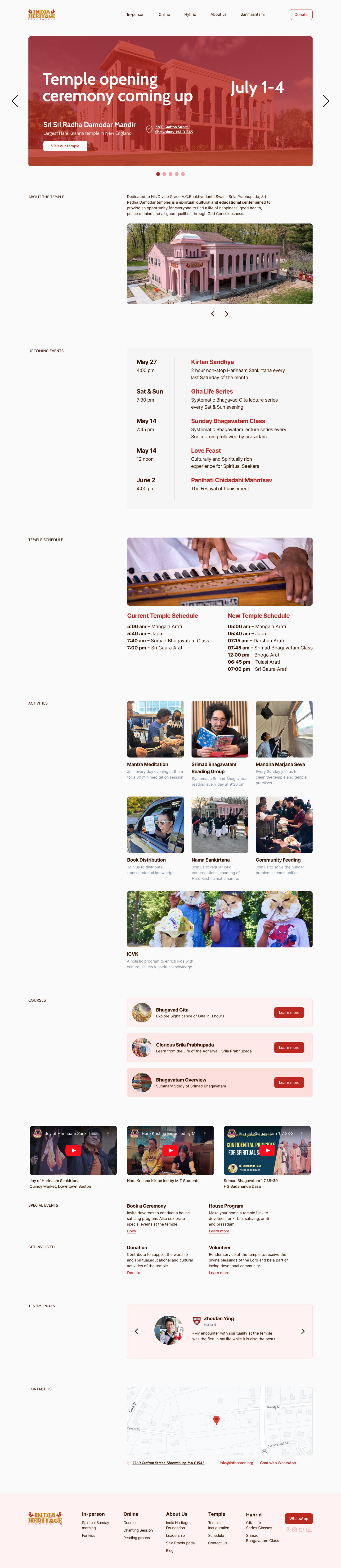 Website of a Vedic temple near Boston. The web site is easy to perceive due to the user-friendly grid. Developed on the Webflow platform. The website provides comprehensive information for those wishing to visit the temple.